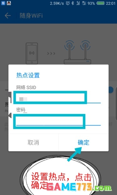3、打开随身WiFi功能后,点击下面的热点设置,可以设置热点的属性。