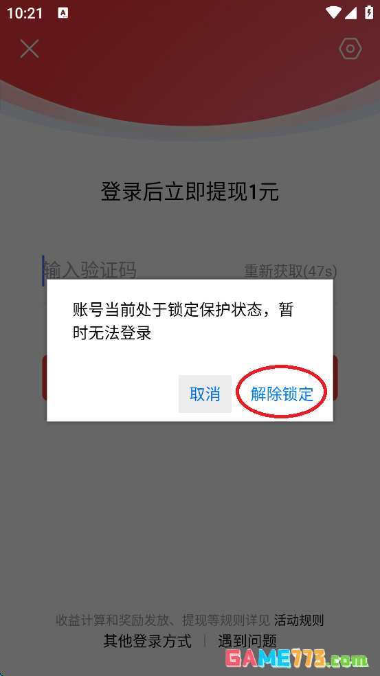 10、再次登录账号时,会显示,账号处于锁定保护状态,无法登录。想解锁直接点击弹窗右下角的“解除锁定”。