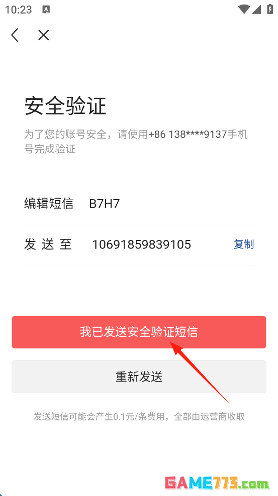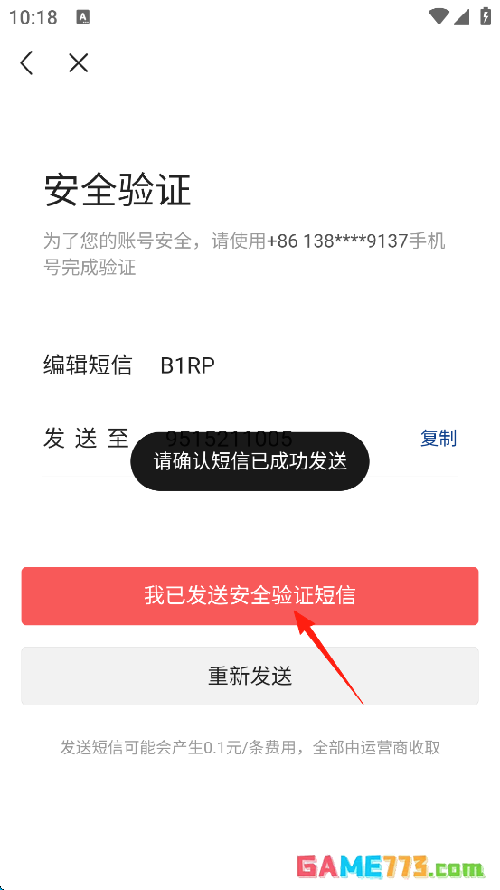 11、发送验证短信,随后点击“我已发送安全验证短信”。