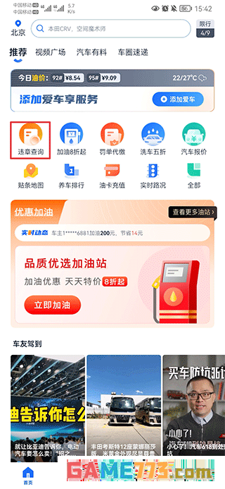 一、打开汽车之家车主版app,在首页中点击违章查询
