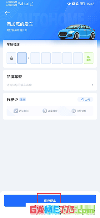 二、输入车牌信息后,并点击保存爱车,之后就可以查询车辆违章记录了