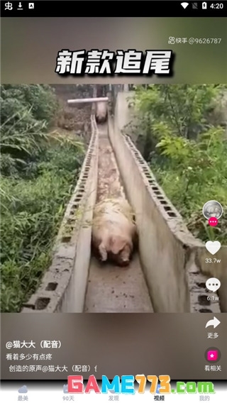 4、点击视频,这里有着抖音类似的短视频,手指往下滑就可以观看不同类型的短视频,非常方便;
