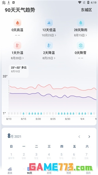 2、点击90天,顾名思义可以查看最近90天天气,了解最近天气情况,防患于未然;