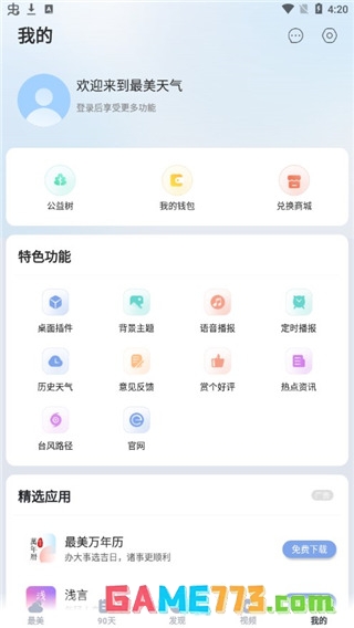 4、【简洁天气界面】天气背景:真实城市美景、自然风光、多版主题随心切换;天气动画:超炫天气动画,下雨、打雷、闪电动画拟真;桌面天气小插件:提供多款桌面插件。