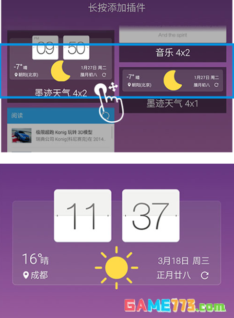 3、选择某种尺寸的墨迹天气小插件,长按拖动到桌面上即可