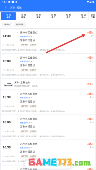 4、点击查询后,会展示出不同时段、不同价格的跨城出行班次,可根据需求选择合适的班次进行预订。