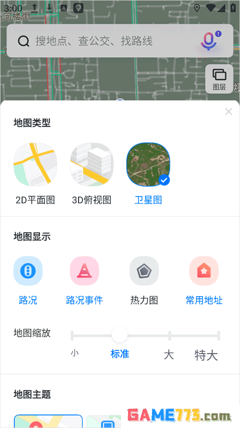 8、app还提供了卫星图、平面图、3d图等地图图层
