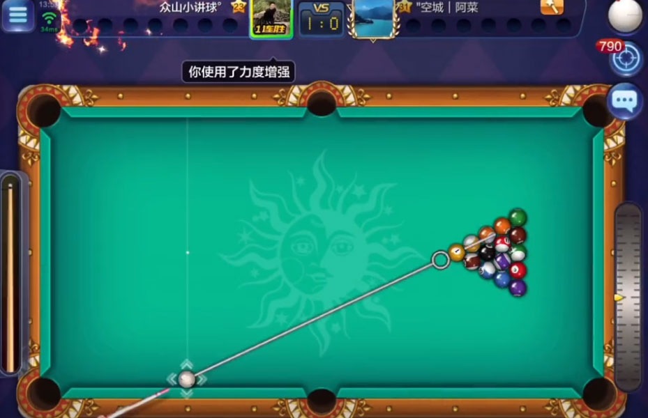 2、任何一方击球后,母球最先触击的必须是本方目标球(本方目标球已全部入袋后,8号球为本方目标球)。