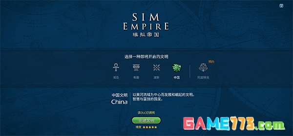 1、下载安装游戏之后,登录游戏之后,首先我们需要创建一个文明,这里小编选择的是中国,你们可以根据自己的喜欢进行选择;