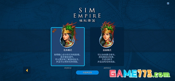 2、选择好国家之后,之后就是选择任务模式,这里有两种模式可以选择分别是任务模式和自由模式,新手建议选择任务模式,然后点击开始新的文明;