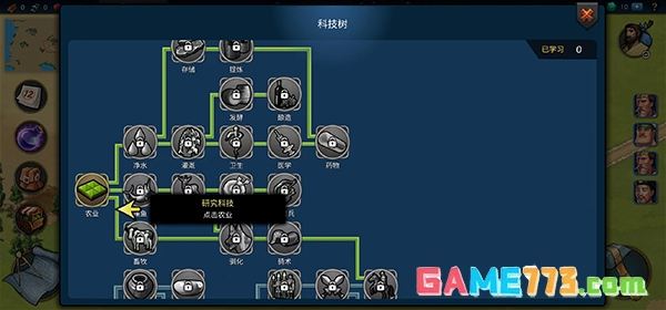 7、之后人口丰富起来了,就是让国家变的更加强大,所以这个时候就需要知识强国了,需要研究科技,点击左边的药品图标来研究科技;