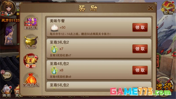作为一个初入三国的英雄,跟随新手指引了解这个纷乱是世界绝对是个明智的选择。千万不要小看了新手指引的作用,召唤灵兽、强化装备、寻找军团…… 前期的每一个成长和进步都离不开新手指引哦!另外,您的奖励面板开启后,请随时关注,如果“奖励”按钮的右上方有个红色的小点点,那就是有奖励可以领取啦,赶紧动手哦!