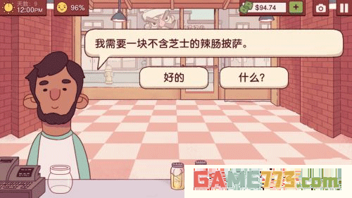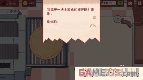 3、游戏开始时,邻居披萨店傲慢的老板会教你如何制作披萨,自己完成制作过程。