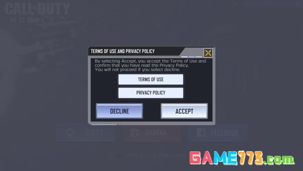 3、首次游戏会出现这个条款提示,大家不要被左侧蓝色按钮给蒙骗了,此处需要点右侧【ACCEPT】同意条款。