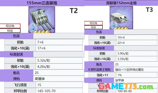 三联203mk15(左二),与罗恩炮类似,对重甲稍强。