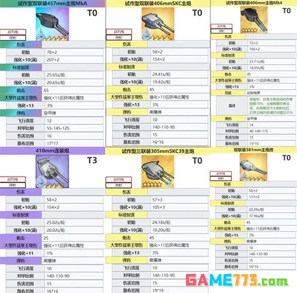 410连装(下左一),高爆弹,非常容易获得的射速向主炮,萌新战神。非常推荐。