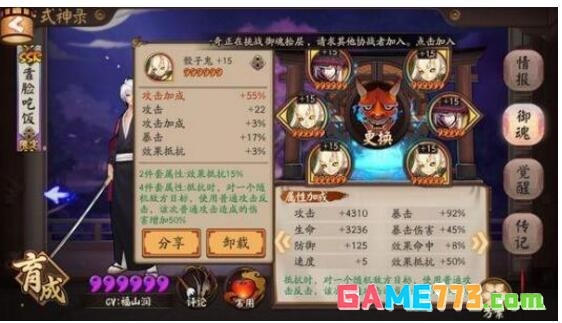 然后要先选择一个属性比较好的胚子,这个标准就是你需要什么属性,它的副属性要与之相关。而且副属性最好选择三条及三条以下的,不建议选择副属性过多的胚子。还有一点,小编非常不建议的就是将御魂一次性的升满15级,因为这样能得到极品御魂的概率非常低,除非你是个欧皇,作为普通阴阳师的玩家还是不要这么赌运气了。