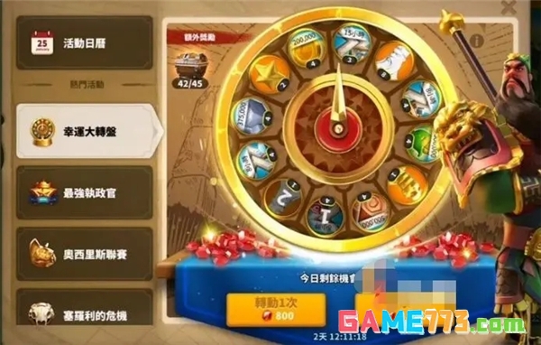 在前期,幸运大转盘是一定要转的,因为第一次转盘会出前期数一数二的将领——理查一世,理查一世在前中期,无论是作战还是日常活动,都有着比较不错的强度,并且5551的强度就接近觉醒了,实在养不到5551的5511也能将就着用。