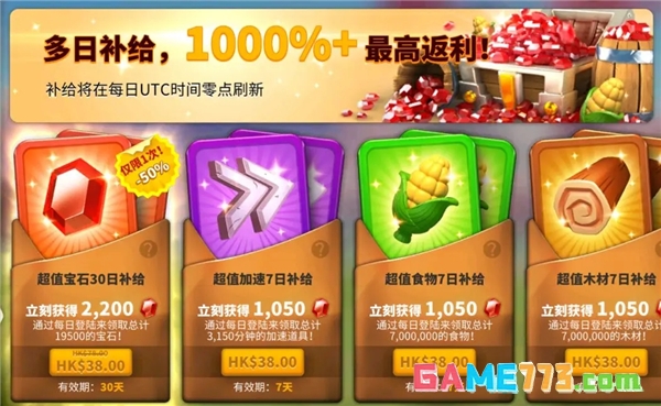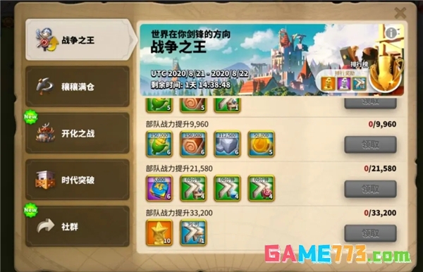 这些是大家熟悉的消耗加速来获得奖励的活动了,大致有两种,一种是消耗加速获得奖励,一种是提升建筑/科研/部队战力获得奖励,有的活动还会有排行奖励。