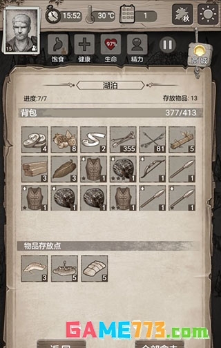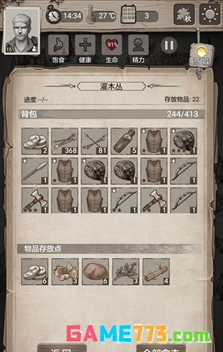 掠夺者营地很肥务必推掉,时间很充裕可以一天推一点。本关结关需要活18天,打完所有点之后每天就是找威利换石片,然后隔几天走一遍资源点。如果觉得食物压力大,请在推完营地后给二号人物断粮