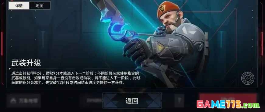 5v5 团队模式,最先升完 12 阶或在 12 分钟内突破最多阶段的队伍获胜。击败敌人累积 1 分,集满 7 分升阶。升阶后武器随机更换(可能变枪或技能)。未击败 / 助攻者无法升阶,得分减半。