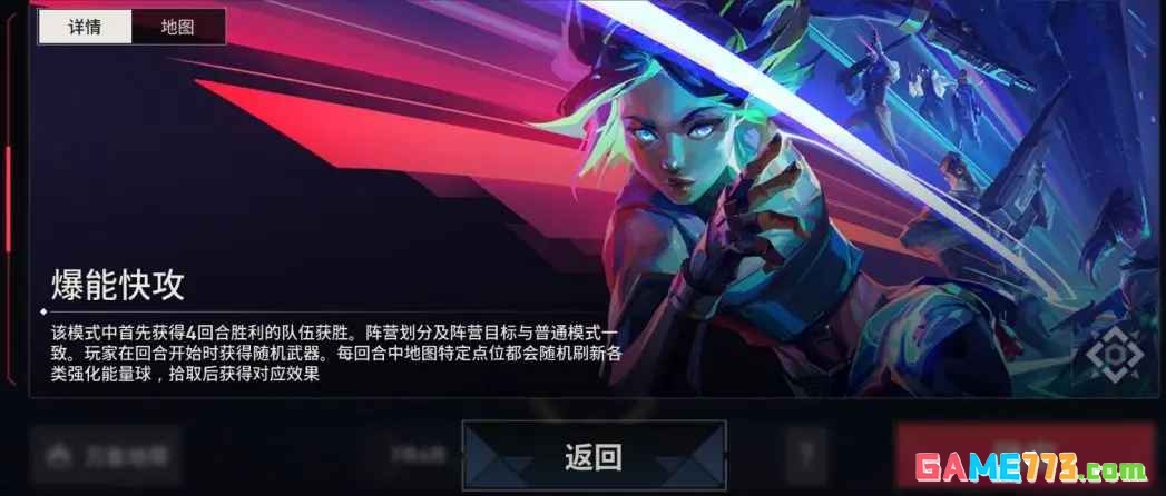 每局时间更短,节奏更快。 4 胜制,先赢 4 回合者胜。第 4 回合攻守互换,攻方自备辐能核心。每回合全队武器随机统一,小技能自动补满。地图随机刷新能量球,拾取可获得个人或团队增益。