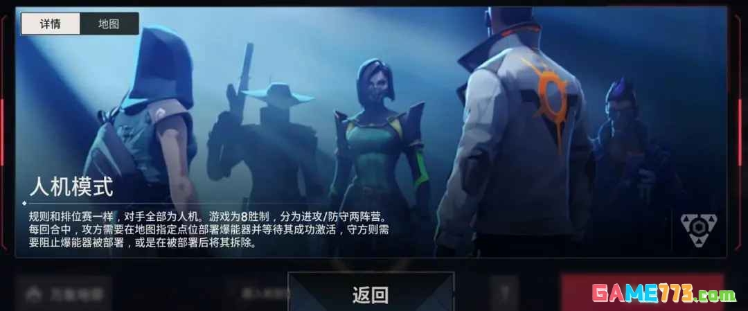 与电脑博弈较量。 8 胜制,与电脑对手在爆破玩法中较量,规则和普通模式一样。