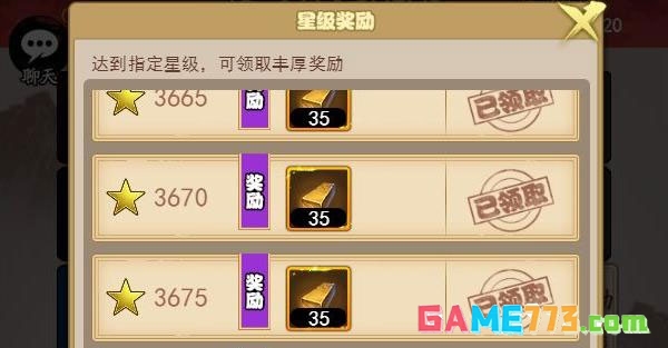 3、通天剑冢集星奖励:来了来了!号称目前白嫖免费金条最多的途径。玩儿过剑冢的老玩家都知道,通关每一层剑冢都会获得1-3个不等的星星(根据对战回合数来计算,第一阶段战胜对手可以获得全部3个星,第二回合战胜对手可以获得2个星,到拼内力阶段战胜对手则获得1个星)。这个时候肯定有萌新举手问:小蛮,这些星星有什么用呢?当然有用啦!每增加一颗星星,就可以累积起来,等达到一定的数量之后,就可以在剑冢页面里面领取“星级礼包”!这个礼包打开来就是金条奖励,虽然不多,一个星级礼包只有35金条,但是后面获得的星星越多,那可以领取的星级礼包也就越多的(每5个星可以领取一个星级礼包)。