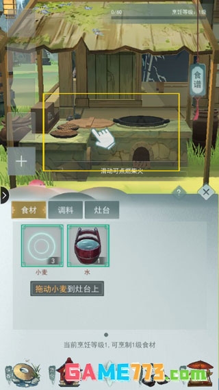 拖动食材至灶台之上,滑动点燃柴火,多次滑动即可完成美食烹饪。