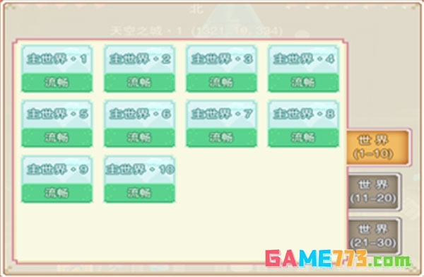 奶块的世界分为30个各自独立的世界,但玩家可以免费传来传去。在天空之城,点击传送水晶,会出现世界地图,如下图所示(由于地图资源大,加载会略慢,请耐心等待一下)