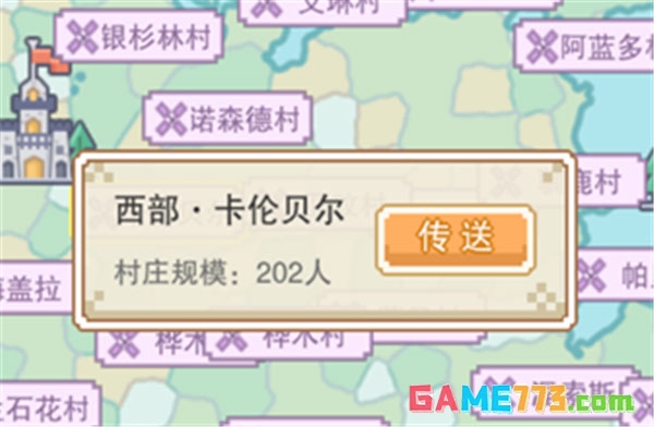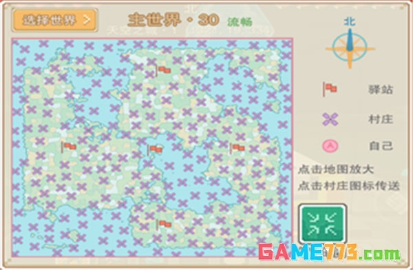 当然,如果你想去的点,没有驿站也没关系,继续点击驿站内的水晶,打开世界地图,任意找一个村庄,传送过去就好了。这样能直接更快速的到达你想到的地图角落。