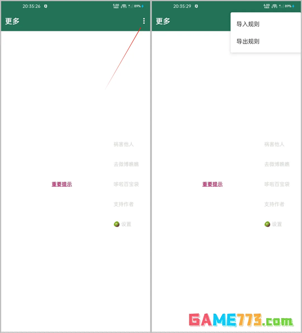 首先我们需要复制规则,然后打开李跳跳-更多-点击右上角的三个小点点,即可看到导入规则的选项。