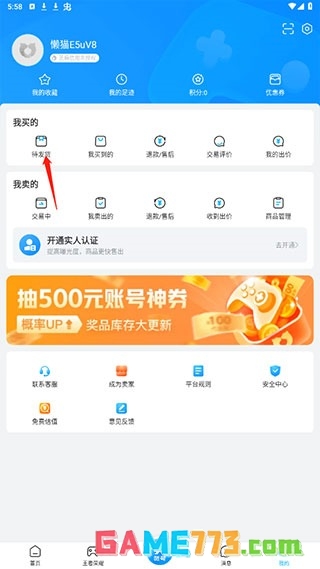 1、点击我的,进入手机的交易猫,点击我的。