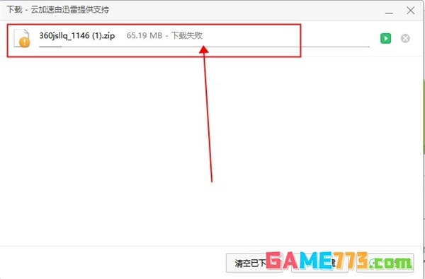 2、点击下载后发现文件没有任何进度变化,或进度条快下载完成后还是显示了下载失败等情况。