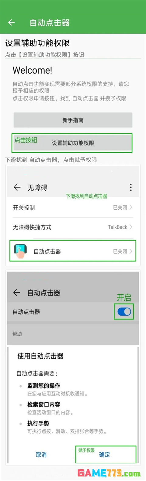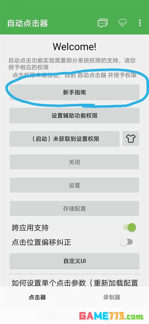 2、进入软件后有一个新手指南,按照上面的步骤操作就可以了,记住一定要打开悬浮窗,不打开就没法用。