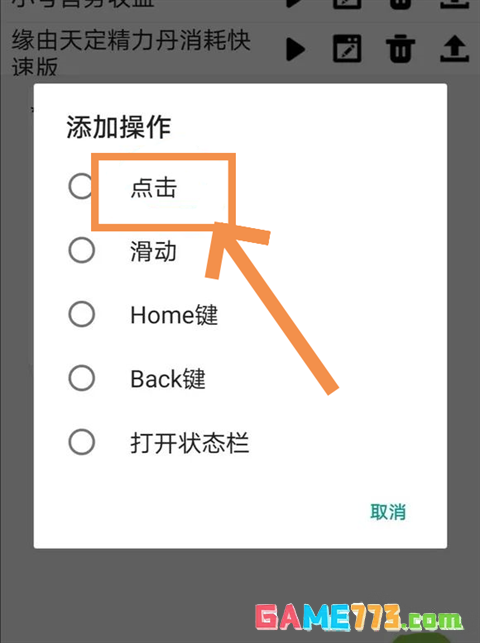 7、点开编号键,选择第一个“点击”的选项,缘由天定只需要这一个操作键,每个编号都这样设置