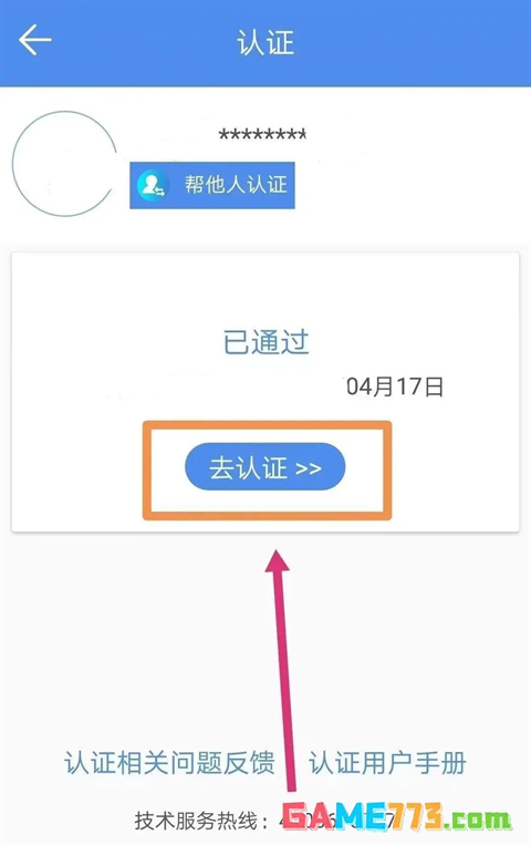 提醒:一台手机可以认证多人,若要帮助他人认证,请点击切换认证人即可。