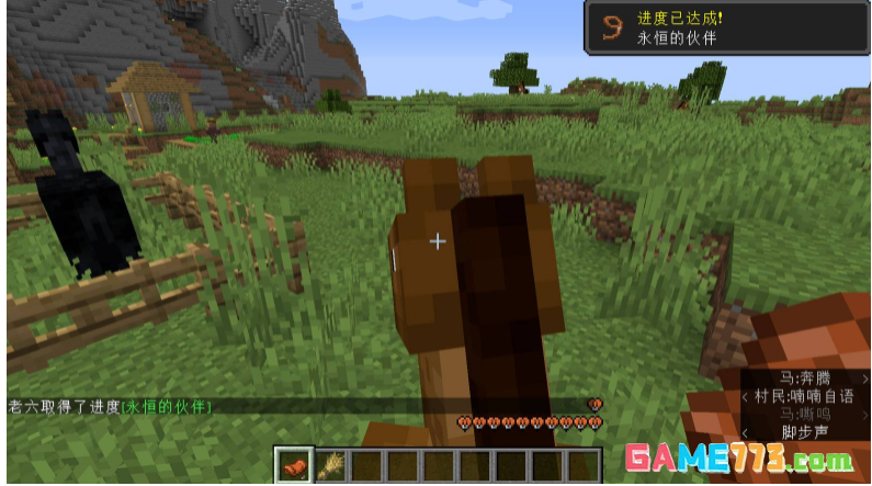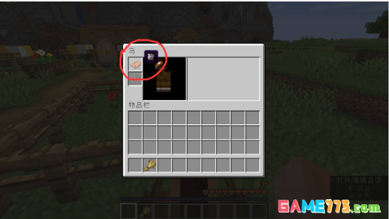 3、骑上之后按“E”键,打开物品栏,将鞍装备到马身上即可。