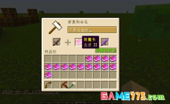 示例:将“锋利 IV”附魔书与钻石剑合并,获得附魔后的钻石剑。