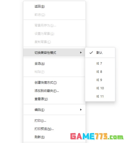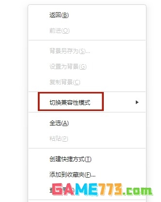 3、接着使用鼠标右键点击网页的空白处,弹出菜单内点击“切换兼容性模式”。