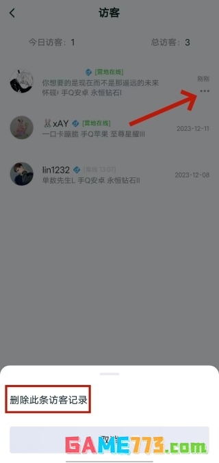 只需要前往好友的营地主页,找到你留下的访客记录,删除访客记录即可实现王者营地隐身访问。