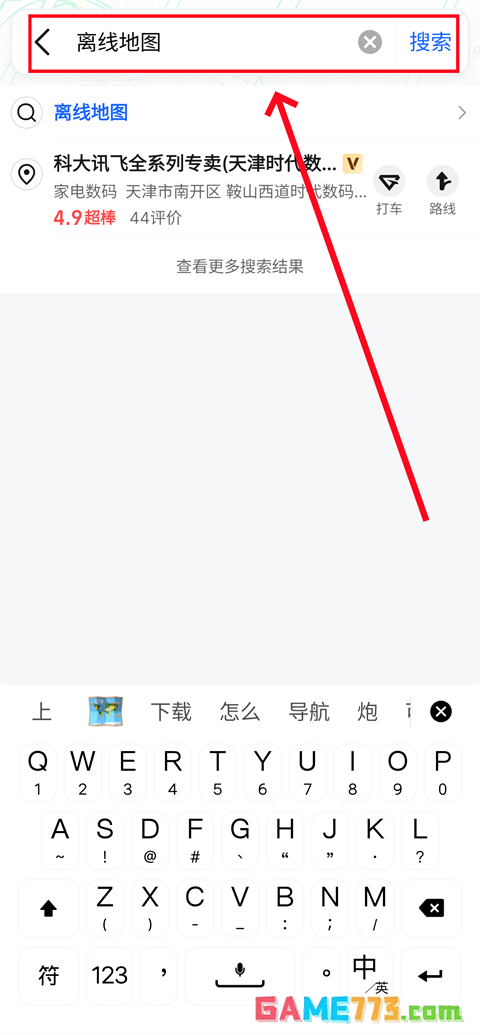 1、进入高德地图APP后在搜索款输入“离线地图”
