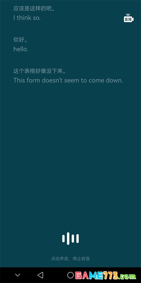 3、跳转页面后,点击屏幕下方说话按钮,即可进行实时翻译