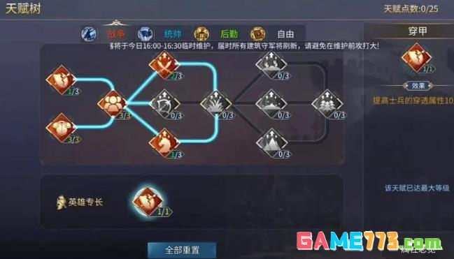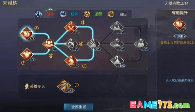 ④骑兵增伤和步兵增伤点满后,回头将‘穿透’点满;