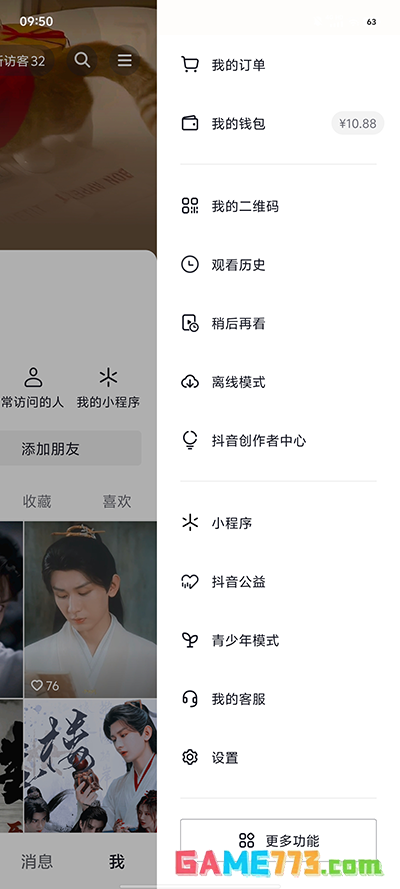 2、在抖音主页的右上角,点击三条横线,即“设置”按钮。