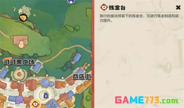 玩家前往地图上的炼金台即可进行咕噜球合成。可可广场附近的炼金台数量较多,传送图标也较容易识别。