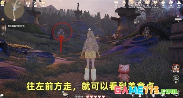 传送至【怪味愿望山坡】锚点后,沿左前方方向前进,盖章点就位于山坡下方区域。