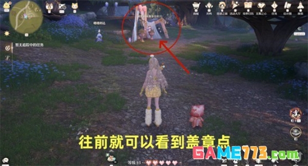 传送至【心愿研究所】锚点后,沿路径直行即可到达盖章点所在位置。