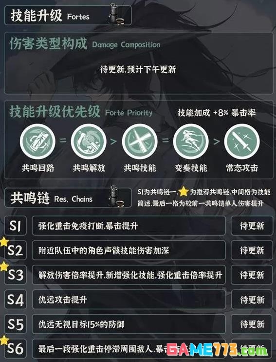 共鸣链推荐抽取2/3/6链,2链可以增强主C的声骸技能伤害,3链大幅提升个人伤害,若想用仇远主C,建议3链。6链增加5秒控制,机制不错,可选可不选。