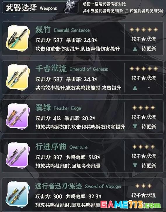 仇远武器首选专武刃竹,其余武器可以考虑加共鸣效率的武器。